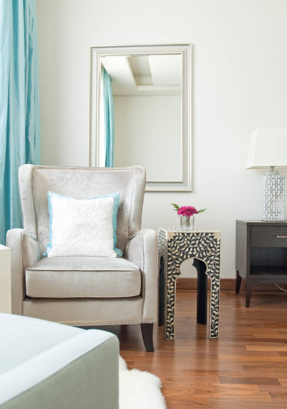 This villa in Abu Dhabi had initially been designed as family majlis, but is currently used as a first home by a lovely young couple. They had ask for help to give the house the needed update and attention to make it fit for them. The master bedroom was restyled and the previously very open family sitting area has been turned into a stylish lounge. Two previously unused rooms have been turned into a cosy second sitting room for her and a library to house the couples large collection of books.